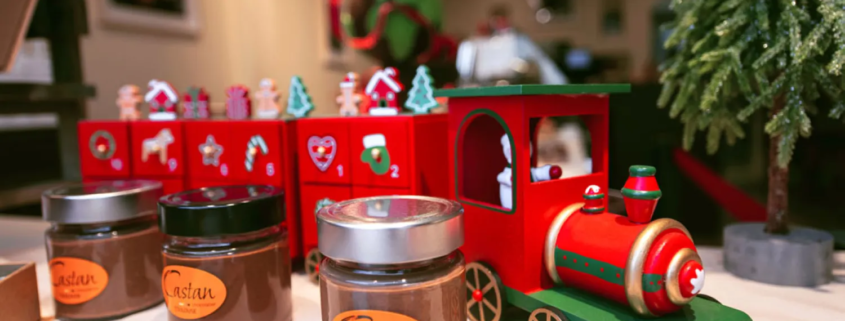 Voici la liste (non exhaustive) des produits préférés de l’équipe Castan pour un Noël 100% gourmand : une dose de Chocochaud (Cacao Grand cru Trinité Madagascar), quelques sucettes de Noël (chocolat noir ou lait selon les préférences), un joli moulage (ou deux), des rochers pralinés (noir ou lait), les traditionnels mendiants, le trio orangettes / gingembrettes / citronnettes, un petit coffret de marrons glacés, sans oublier notre savoureux coffret de 32 chocolats et notre enveloppe 15 chocolats !
