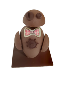 Les montages imaginés par l’équipe des chocolatiers sont au nombre de deux cette année. On retrouve tout d’abord un adorable « Lapinou » aux trois chocolats (retour en enfance instantané) ! A ses côtés, nous avons innové pour cette édition avec un montage représentant un petit robot, tout droit sorti de l’imagination de Lola, membre de l’équipe, qui prépare actuellement son Brevet Technique des Métiers. Il est à noter que les montages sont réalisés en série limitée, et que seuls les gourmands les plus rapides pourront se les procurer !