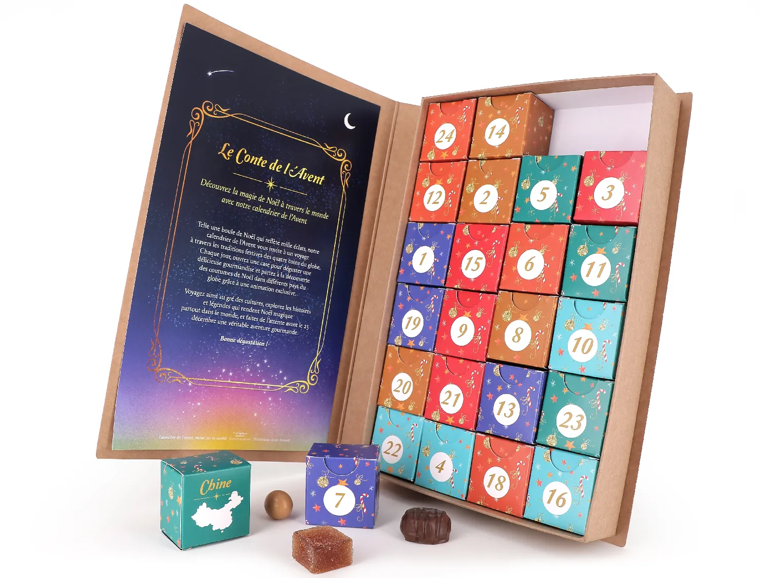 Découvrez notre calendrier de l’Avent chocolaté : chaque jour, savourez un délicieux chocolat et découvrez une surprise qui fera briller les yeux des petits et des grands.